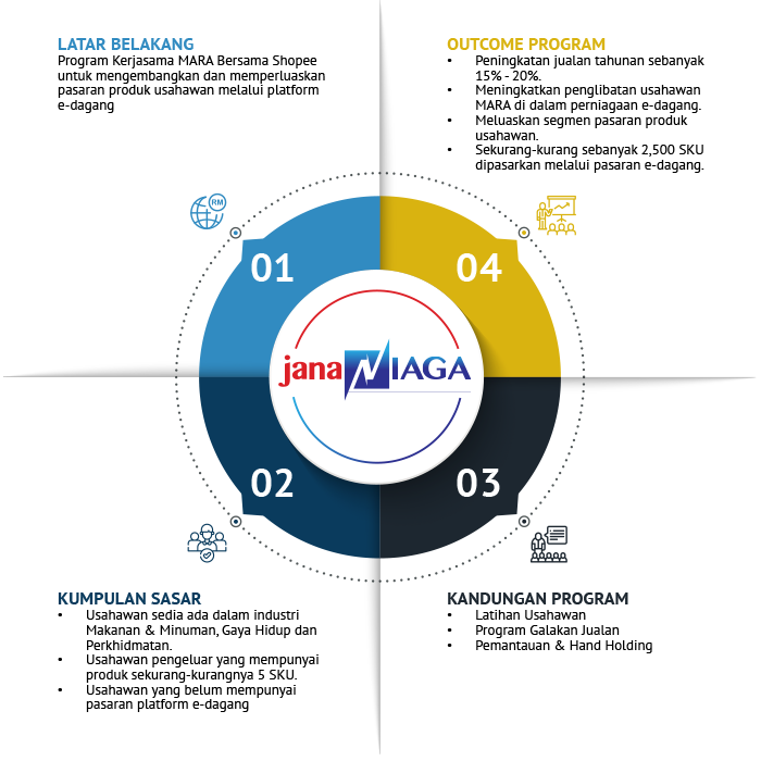 MARA menawarkan ekosistem keusahawanan yang menyeluruh kepada usahawan Bumiputera merangkumi :